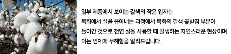 순면 제품 특성상 보풀이나 올이 나갈 수 있으니 절대로 잡아 뜯지 마시고